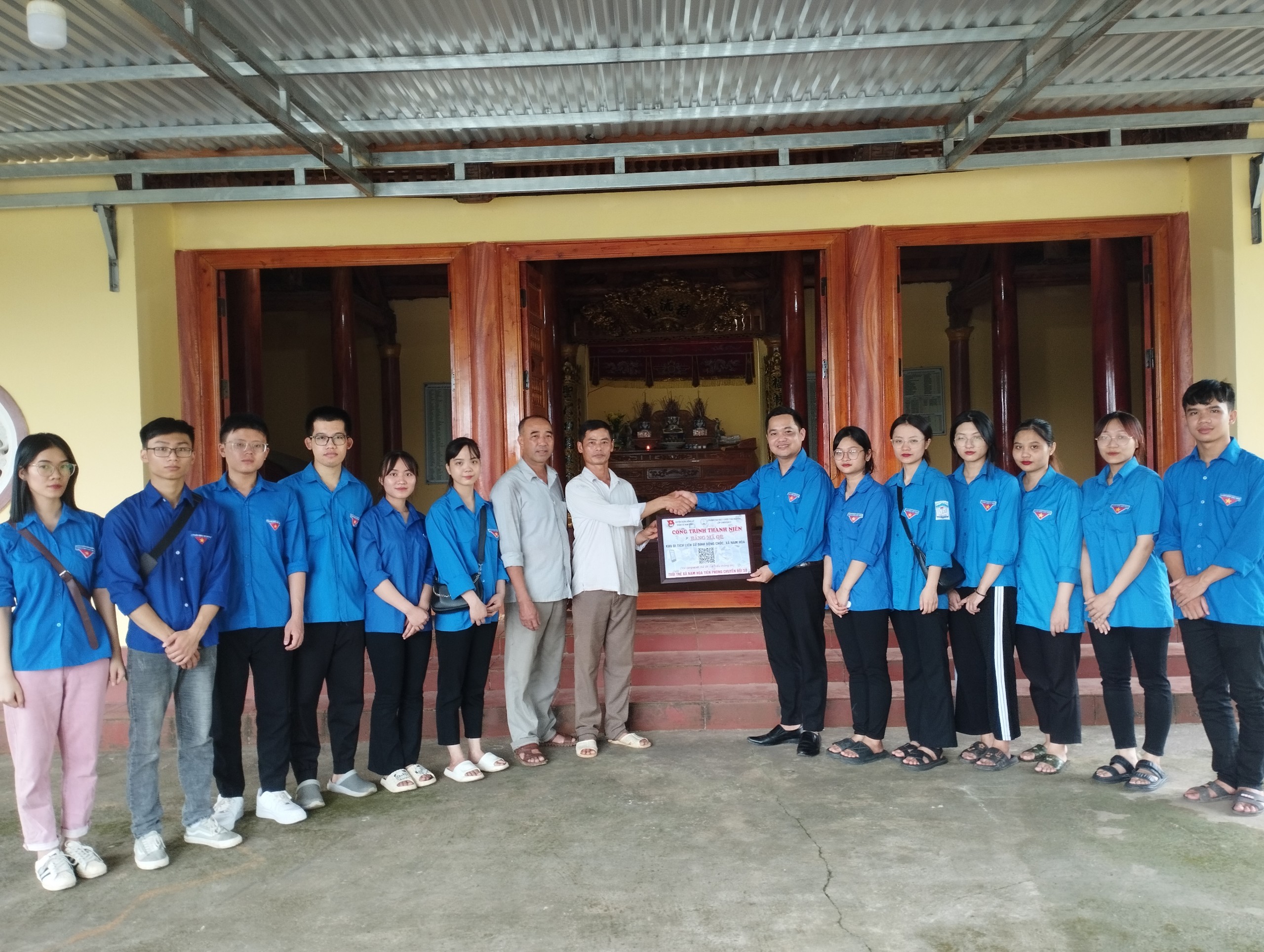 Ngày 8/8/2023 Đoàn Thanh niên xã Nam Hòa phối hợp đoàn sinh viên lớp CNĐDCQK17 trường Đại học y-dược Thái Nguyên bàn giao công trình thanh niên Bảng mã QR khu di tích lịch sử Đình Đồng Chốc, xã Nam Hòa